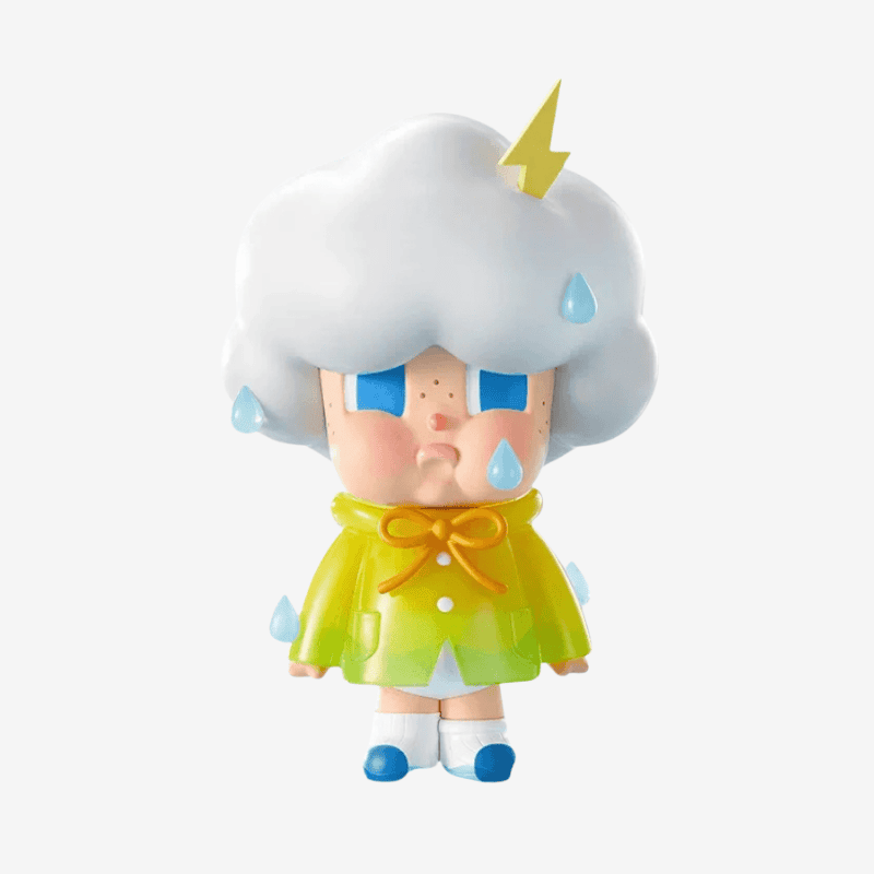 The Crybaby Raindrop Keeps Falling From My Head figure captures one of the most poetic and emotionally expressive designs in the Crybaby lineup. Released as a 2024 limited edition with only 300 pieces worldwide, this collectible stands at approximately 7 inches and is crafted from high‑quality PVC and ABS materials. Its sculpt features Crybaby sitting under a tiny raincloud, tears blending with falling droplets—a visual metaphor that resonates deeply with collectors who appreciate art toys that tell a story.