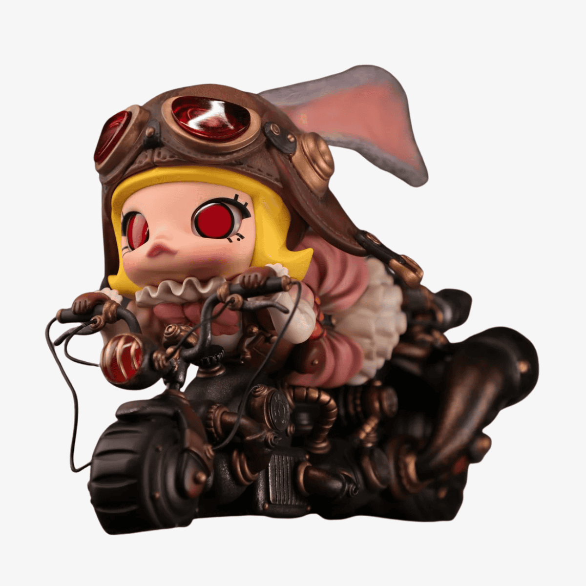 Detonating Velocity Speed Rabbit Molly V1 is an exclusive collectible from Pop Mart x Kennywork, designed to capture speed, energy, and whimsical charm. Right at the beginning, this figure introduces Molly in her daring speed rabbit persona, styled with racing goggles, steampunk-inspired attire, and bold mechanical accents that highlight her adventurous spirit.