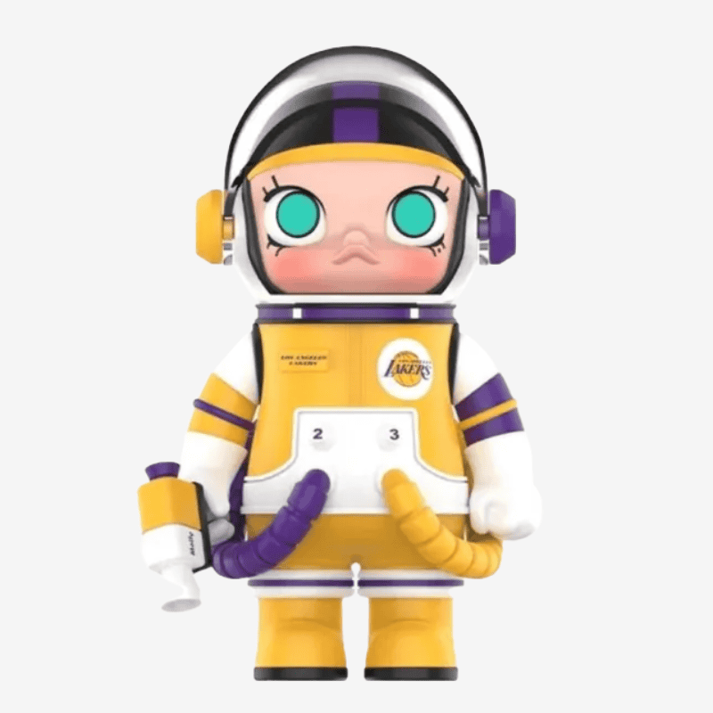 This Lakers edition features the iconic team colors reimagined through Space Molly’s futuristic aesthetic, blending sports culture with Popmart’s playful, space‑explorer personality. As part of the 2023 MEGA Space Molly NBA lineup — which includes teams like the Heat, Nuggets, and Celtics — the Lakers variant stands out as one of the most recognizable and sought‑after designs in the series .