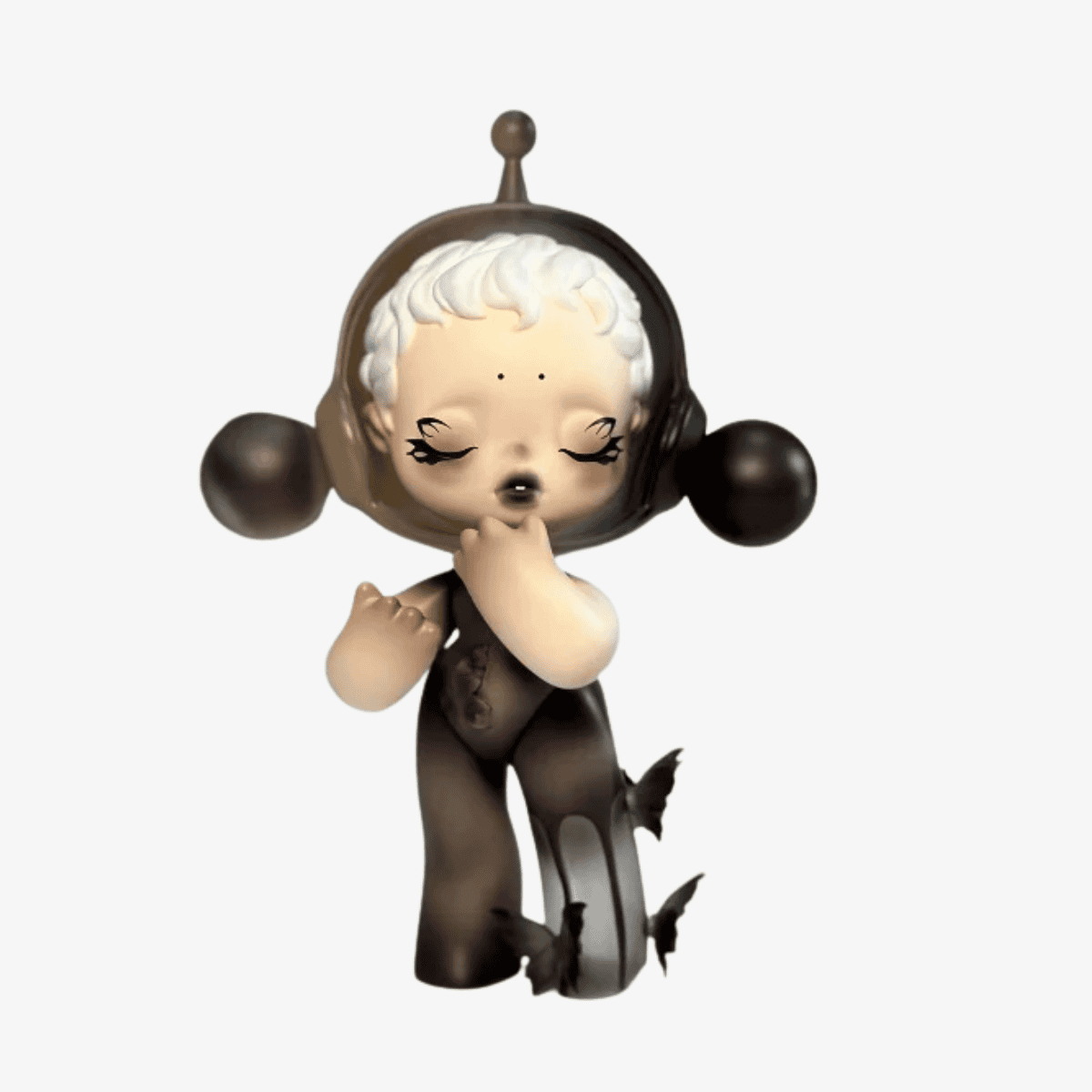 The expressive pose — one hand near the mouth, the other slightly raised — conveys secrecy and introspection, as if caught between silence and revelation. Skullpanda’s artistry shines through in the sculpted details, blending fantasy motifs with gothic aesthetics to create a collectible that feels alive with meaning.