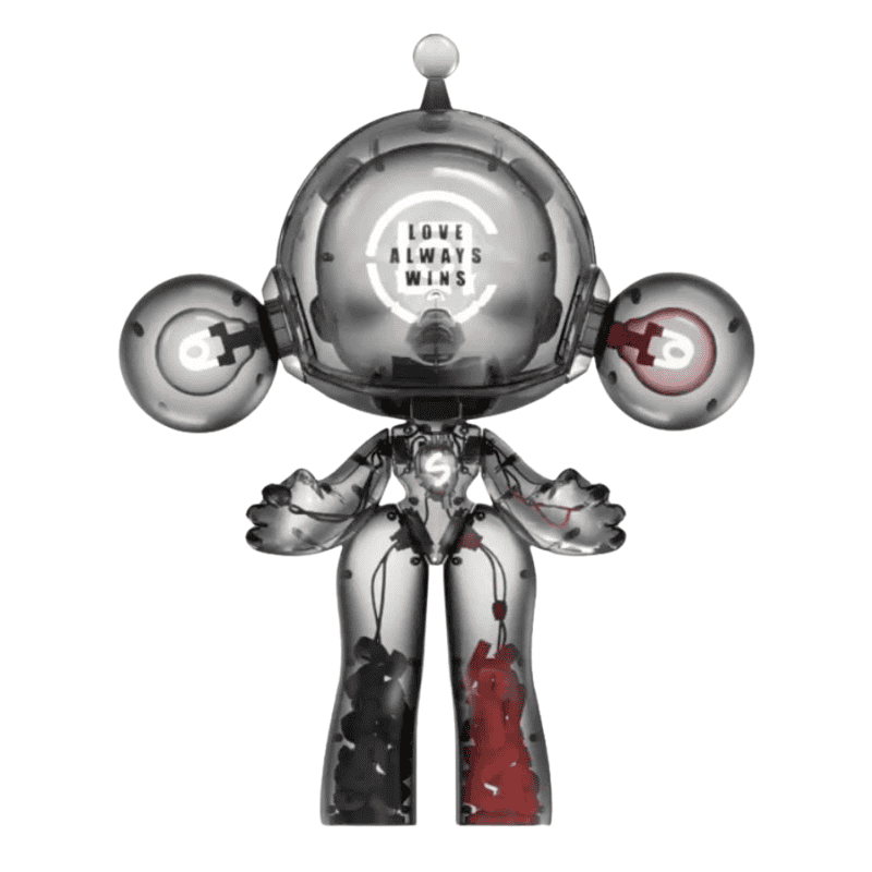 is a monumental collaboration between Pop Mart’s Skullpanda line and the fashion brand CLOT. Released under the MEGA α series, this oversized collectible embodies the theme “Love Always Wins”, blending Skullpanda’s surreal aesthetic with CLOT’s bold, streetwear‑inspired artistry.